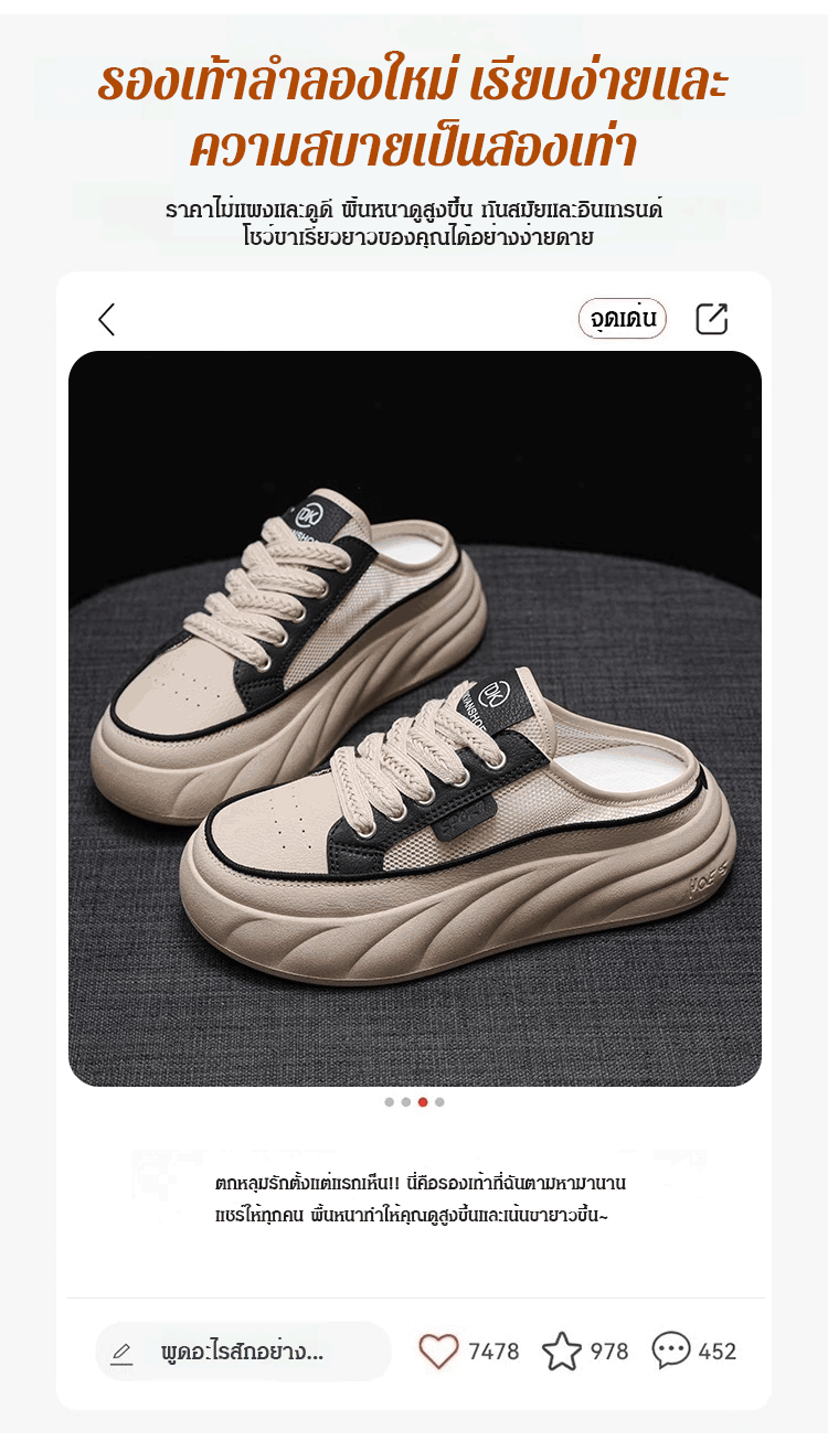 รองเท้าสลิปออนพื้นหนาแฟชั่น
